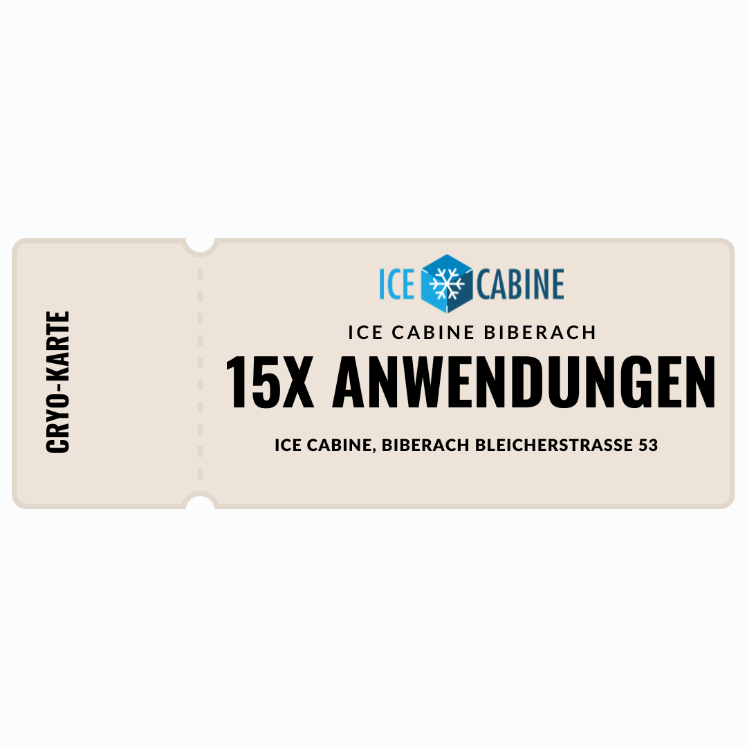 Mit der 15er-Karte der Ice Cabine Biberach sicherst du dir gleich fünfzehn Anwendungen in unserer Kältekammer und genießt maximale Flexibilität. Ob zur Regeneration nach dem Sport, zur Schmerzlinderung oder zur Stärkung des Immunsystems – regelmäßige Kälteanwendungen helfen dir dabei, deine Ziele zu erreichen und dein Wohlbefinden nachhaltig zu steigern.